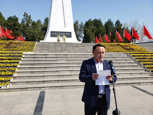 公司黨委書記徐向峰代表公司向英勇的革命烈士們敬獻(xiàn)了花籃,同時(shí)發(fā)表了講話。他說這八十二位烈士是為淮陰人民而戰(zhàn),是為祖國(guó)而戰(zhàn),他們是無數(shù)抗日先烈的一部分,我們要深切緬懷所有的為國(guó)犧牲的革命先烈!現(xiàn)如今,在以習(xí)近平同志為核心的黨中央的帶領(lǐng)下,在習(xí)近平新時(shí)代中國(guó)特色社會(huì)主義思想引領(lǐng)下,中國(guó)特色社會(huì)主義進(jìn)入了新時(shí)代,作為新時(shí)代的共產(chǎn)黨員,我們要繼續(xù)傳承先烈遺志,宏揚(yáng)他們不畏艱難、不怕犧牲、英勇頑強(qiáng)的革命精神,服從大局、心中無我的擔(dān)當(dāng)精神。徐書記號(hào)召大家要加強(qiáng)自我修煉,全面提高自我,事事有擔(dān)當(dāng)、能擔(dān)當(dāng)、會(huì)擔(dān)當(dāng),盡顯先鋒模范的帶頭作用,帶領(lǐng)一代一代水建人,為淮陰水建更加美好的明天而努力奮斗。