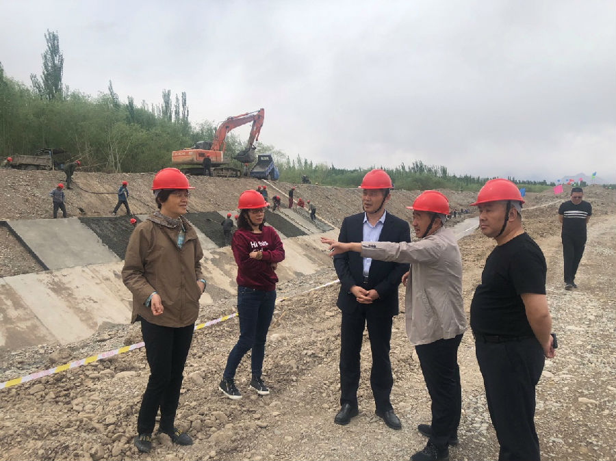 2019年4月26日,江蘇省住建廳高建副廳長、監(jiān)管處劉紅霞處長、招標辦陳慧玲主任一行在江蘇省住建廳駐新疆辦事處主任袁玉佳陪同下,來到我公司承建的阿圖什市上阿圖什鎮(zhèn)喀爾果勒村段恰克瑪克河防洪壩建設項目,實地看望在艱苦環(huán)境下作業(yè)的施工人員,并對施工現(xiàn)場的安全、質(zhì)量、進度等情況進行了檢查和指導。