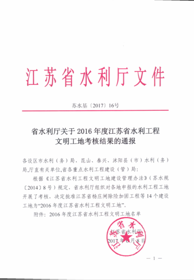 楊莊閘除險加固工程土建施工及設備安裝工程